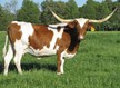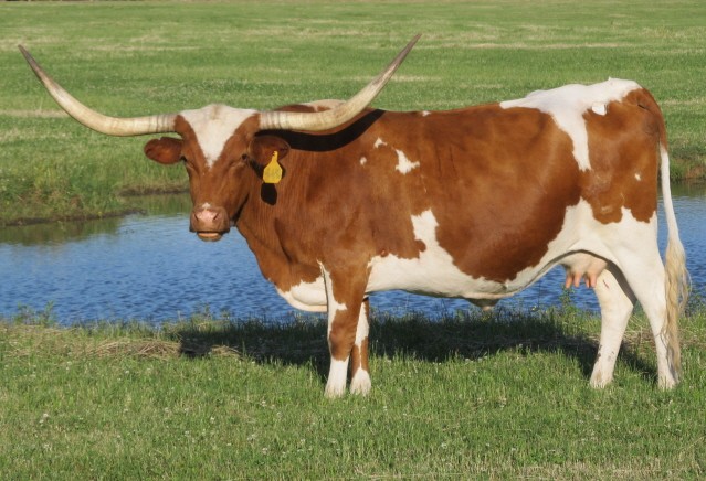"Pitty Pat" was our first registered longhorn that we bought. She is a family favorite. Big bodied, beautiful color and horns and wonderful disposition.